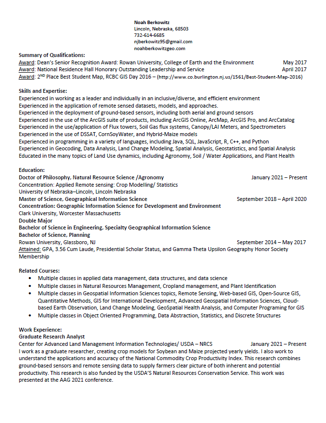 News Links/LinkedIn/Resume: Above is a Landsat 8 cloud-free composite (bands 4,6,5) of West Malaysia built with Google Earth Engine Code: Link News Links: https://snr.unl.edu/gradstudent/spotlight/berkowitz-noah.aspx https://www.clarku.edu/schools/idce/2019/11/27/gis-graduate-students-to-intern-with-model-un-impact/ https://clarknow.clarku.edu/2020/08/20/clark-labs-forecasts-how-land-use-will-change-across-the-globe-by-2050/ LinkedIn: www.linkedin.com/in/noah-berkowitz Resume Below: